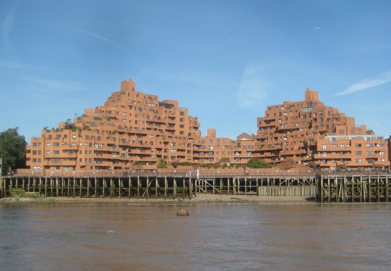 The roots of the ‘ziggurat’ design stem from ancient Mesopotamia. Essentially the style if of a stepped building with similarities to a pyramid. Apart from this stepped styling the building was designed with a concave shape rather than being yet another anonymous flat faced building on the Thames. The architects designed this so as to offer as many flats as possible a direct river view . This together with various options of terraces and balconies. The design and styling of the building also meant that although some flats have a large degree of similarity, each flat contained within the main building is unique.